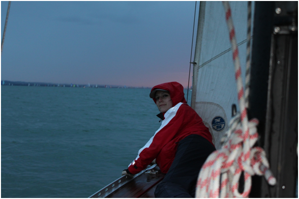 Den Freitag verbrachten wir im Lindauer Hafen mit kleineren Reparaturen und dem Versuch, in den kurzen Regenpausen wenigstens die Matratzen für die kommende Nacht zu trocknen. Mittlerweile war auch unsere Vorschiffsfrau Larissa Elser zum Team gestoßen und so bezogen wir nach absolviertem Wetterbriefing und Taktikbesprechung Position für den großen Start um 19.30.
